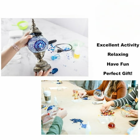 MEHOOM DIY Mosaic Lamp Kit,Turkish Crafts Kit for Adult,Moroccan Decor,Mothers Day Gift Ideas, Blue