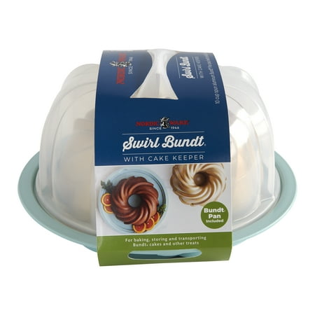 Nordic Ware 10 Cup Nonstick Aluminum Bundt + Cake Keeper Set, Gold and Blue, Blue