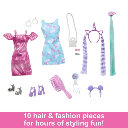 Barbie Fun & Fancy Hair Doll with Extra-Long Colorful Black Hair and Styling Accessories