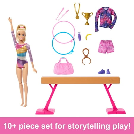 Barbie Gymnastics Playset with Blonde Fashion Doll, Balance Beam and Accessories, 3 Years & up