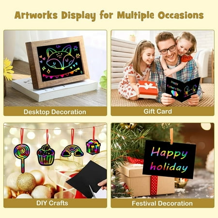 BESSNINI Scratch Paper Arts and Crafts Kits, Rainbow Cards Drawing Crafts for Adults Kids 3 4 5 6 7 8-12 Years Old Girls & Boys (70 Pieces)