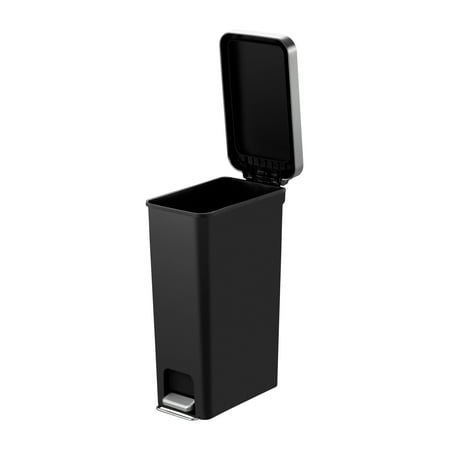 Better Homes & Gardens 10.5 Gallon Kitchen Step Trash Can, Plastic Slim Step-On Kitchen Trash Can, Black, Black