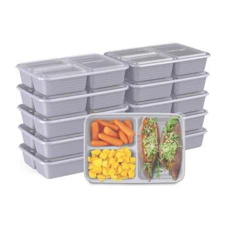 Bentgo? Prep 3-Compartment Containers - 20-Piece Meal Prep Kit with 10 Trays & 10 Custom-Fit Lids - Durable Microwave, Freezer, Dishwasher Safe Reusable BPA-Free Food Storage Containers - Lilac