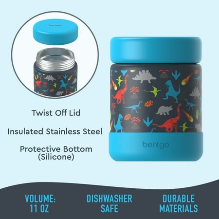 Bentgo Kids Stainless Steel Food Jar - 11oz Leak-Proof Double Insulated Hot or Cold Food Container with Removable Silicone Bumper, Dishwasher Safe, Easy Open Lid, Ages 3+ (Rainbows and Butterflies)