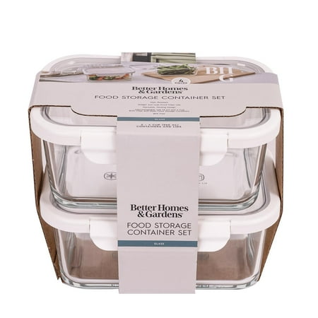 Better Homes & Gardens 4Cup Rectangle Glass Food Storage Container with Tritan Lid. Set of 2, 4 Pieces