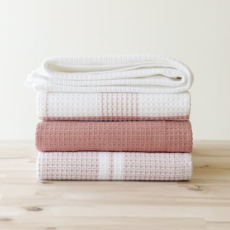 Better Homes & Gardens 4 Piece Waffle Kitchen Towel, Old RosePink,