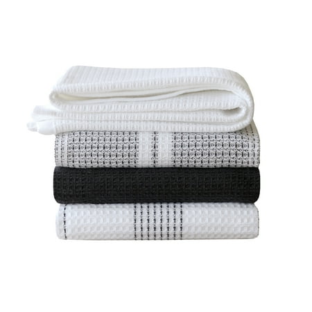 Better Homes & Gardens 4 Piece Waffle Kitchen Towel, Rich Black, Black