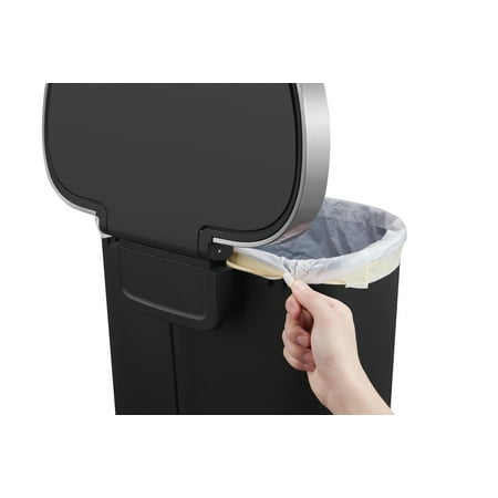 Better Homes & Gardens 14.5 Gallon Trash Can, Plastic Step On Kitchen Trash Can, Black, Black
