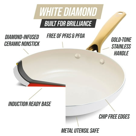 Blue Diamond White 12 Piece Nonstick Aluminum Pot and Pan Cookware Set, Gold