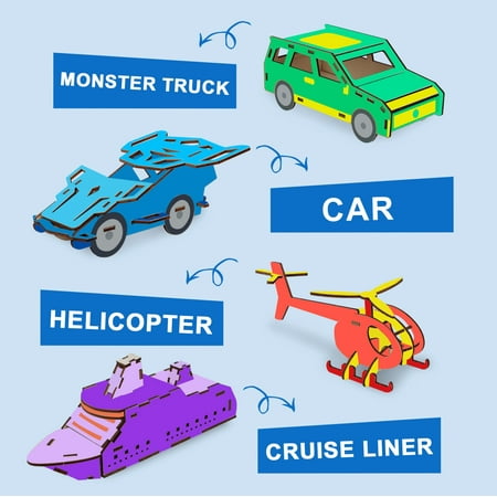 Build & Paint Your Own Wooden Cars, Monster Truck, Helicopter, Cruise Liner, DIY Wood Craft Kit, Easy to Assemble Arts Crafts Kit, Birthday Party Presents for Kids Boys Ages 6 and Up