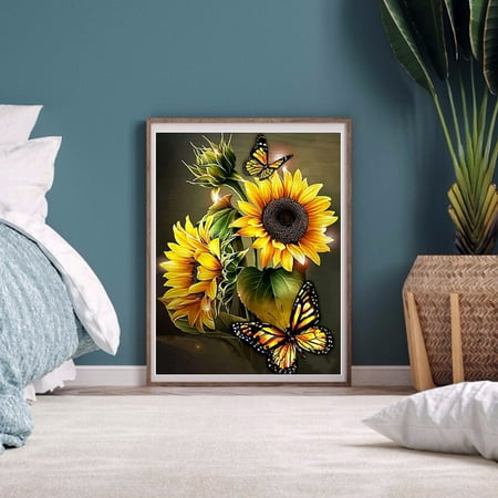 Diamond Art Kits for Adults, Butterfly Full Drill Round Diamond Art Kits for Beginners, DIY Art Craft Kits, Gifts for Friends & Family, Flowers Picture for Home Wall Decor 40*30cm.