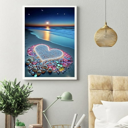 Diamond Art Kits for Adults,Heart Beach Full Drill Diamond Dots Art for Beginners, Round 5D Paint with Diamonds Pictures Art for Home Decor 12x16inch, Other