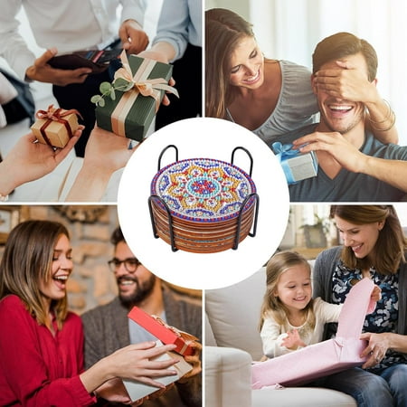 Diamond Painting Coasters with Holder,DIY Datura flower Life Coaster Diamond Art Kitsfor Beginners, Adults Small Diamond Painting Kit Art Craft Supplies(8 Pcs )