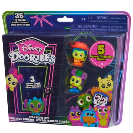 Disney Doorables Neon Glow Peek Figures, 1.5-inch Collectible Figurines, Kids Toys for Ages 5 up