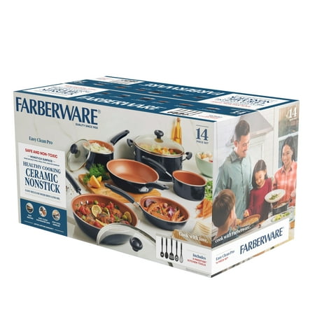 Farberware 14 Piece Easy Clean Pro Ceramic Nonstick Pots and Pans Set, Black