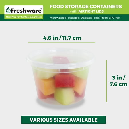 Freshware Food Storage Containers Plastic Deli Containers with Lids, Slime, Soup, Meal Prep Containers | BPA Free | Stackable | Leakproof | Microwave/Dishwasher/Freezer Safe (16 oz, 36-Set), 16 oz, 36-Set