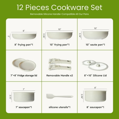 GIANNA 12pcs Non-Stick Cookware Set, Pots and Pans Set with Spatula and Detachable Handle for Kitchen, BeigeBeige,