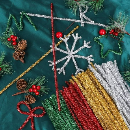 GIXUSIL 100Pieces Pipe Cleaners Set,10 Colors Christmas Decorations Chenille Stems Glitter Pipe Cleaner Craft Kit for DIY Creative Home Arts and Crafts Project Decoration(Red,Gold,Silver,Green Etc)