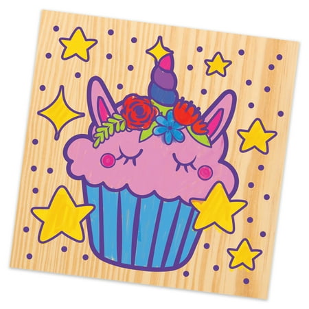 Hello Hobby Wood Art Board Painting Kit, Purple Unicorn Cupcake Design, 6 Acrylic Paints, Boys and Girls, Child, Ages 5+