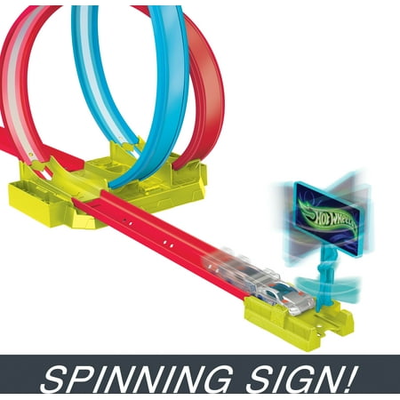 Hot Wheels Track Set, Neon Speeders Skyscraper Speed Circuit with 1 Hot Wheels Car