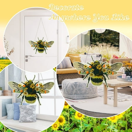 HsdsBebe Diamond Art Painting Hanging, DIY Bee with Diamonds Christmas Single Sided Wall Hanging Kits for Beginners, Art Craft Gem Painting Adult and Children Diamond Art, Other