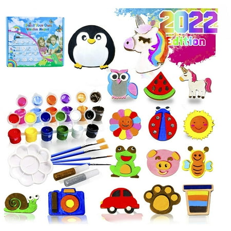 INvench 30Pcs Wooden Magnets Painting Art and Craft Kit for Kids Supplies Party Favors for Toddlers Boys Girls Aged 4-8 Years Old Gift Stuf