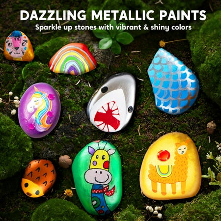 JOYEZA Rock Painting Arts and Crafts Kit with 12 Rocks, Paints, and Accessories