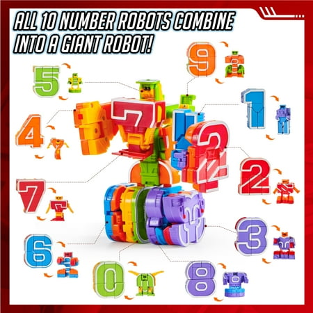 Joyfy 10 Pcs Number Bots Toy 10-in-1 Transforming Robot for Preschool Boys Educational Building STEM Toys Gift for Toddlers & Kids 3 4 5 6 Years Old, Learning Resources, Other