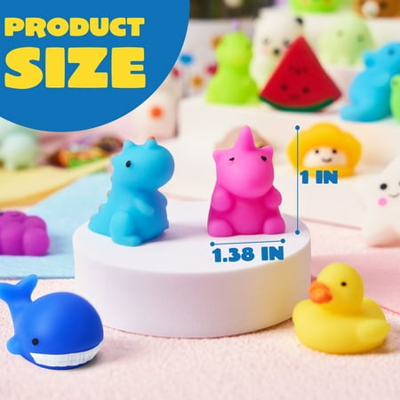 Joyfy 25 Pcs Mochi Squishy Toys for Kids Mini Kawaii Squishies Fidget Toys Animals & Fruit Stress Relief Toys for Party Favors, Classroom Prizes, Pinata Filler, Goodie Bags Stuffers