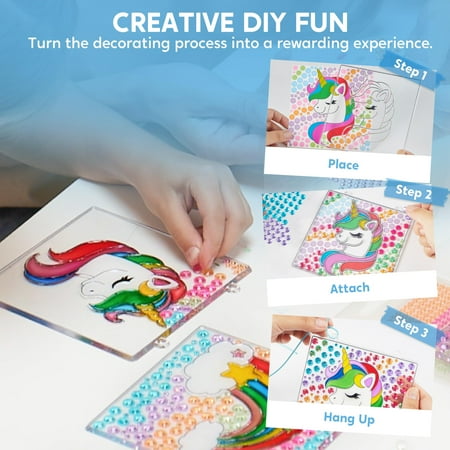 Joyfy 4 Pcs Window Art Making Kits, Sun Catcher Gem Painting Kits, Arts And Crafts for Kids Girls 5 6 8 12