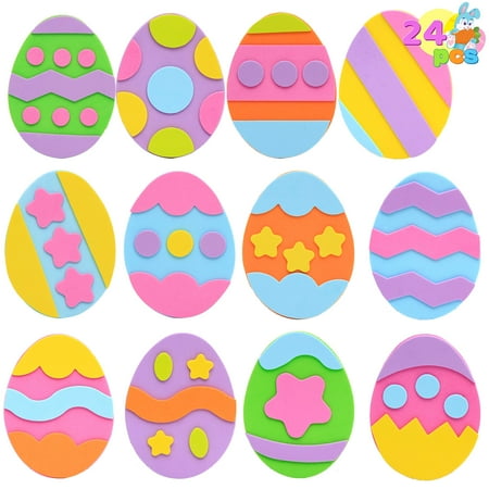 JOYFY 24Pcs Easter Egg Craft Kit for Kids,Egg Foam Magnets DIY Easter Arts and Crafts for Easter Art Activites Home School Easter Decoration, Off-White