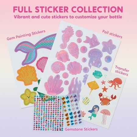 Joyfy Decorate Your Own Mermaid Water Bottle, 20 oz, Purple, with Gem Stickers