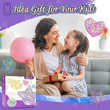 Arts and Crafts for Kids Ages 6-12, 3 Pack 3D String Art Kit for Girls,Christmas Birthday Gifts for 8 9 10 11 12 Year Old Girls and Boys Heart Star Round Lantern 20 Multi-Colored LED Bulbs