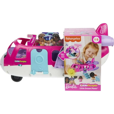 Little People Barbie Toy Airplane with Lights Music and 3 Figures, Little Dream Plane, Toddler Toys