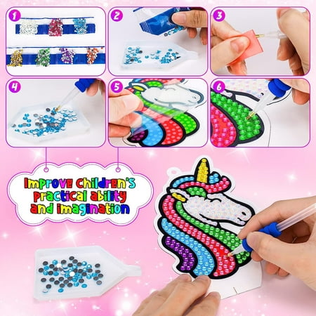 SUNNYPIG Unicorns Gifts for Girls 4 5 6 7 8 9 10 Year Old Girl Birthday Gift: Arts and Crafts for Kids 4-6 Painting Sticker Kits Girls Toys Age 6-8 Gem Toy for 5 6 7 8 9 Year Old Girls Room Decor
