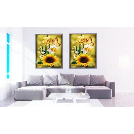 Sunflowers Diamond Art Kits for Adults Beginners Round Full Drill 5D DIY Butterfly Diamond Art Kits Flowers Picture Art for Home Wall Decor 12x16 inch, Yellow