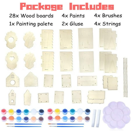 Sytle-Carry 4 Pack Bird House Kit DIY Birdhouse Kits Kids Arts and Crafts Wooden Arts and Crafts Kits Gift for Toddlers