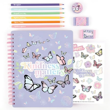 Three Cheers for Girls: Butterfly All-In-1 Sketching Arts & Craft Kit - Includes 6 Colored Pencils, 2 Erasers, Sharpener & Sticker Sheet, Tweens & Girls Ages 6+