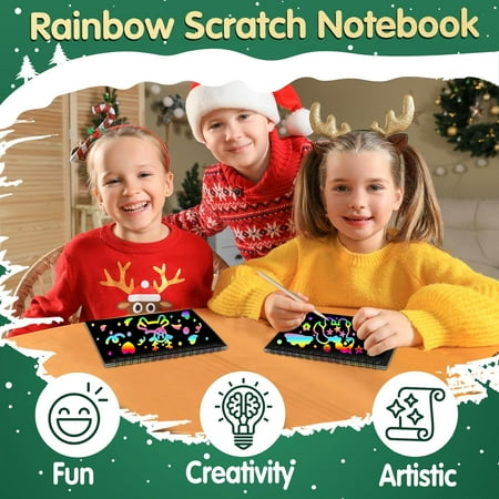 ZMLM Rainbow Scratch Party Favors Kids: Birthday Gifts Toy Bulk Scratch Art Notebook 24 Pack Birthday Goodie Bags Stuffers Girls Boys Art Craft Kit Pads Easter Classroom Prizes School