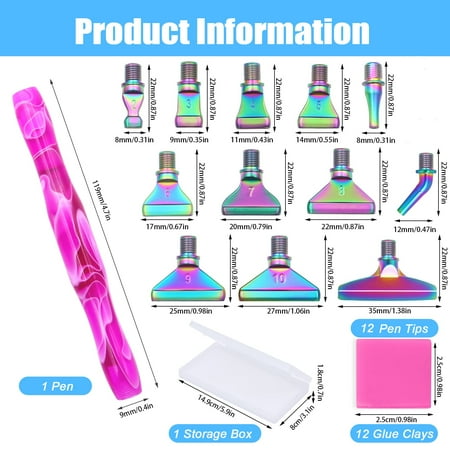 ZYNERY 25 Pcs Diamond Painting Pens Kit, 12 PCS Metal Screw Thread Tips Stainless Steel Tips with 12 Clay, Diamond Art Pens 5D Diamond Painting Tools Accessories for DIY Crafts (Gradient color)