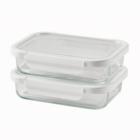 (4 pack) Better Homes & Gardens 2.3Cup Rectangle Glass Food Storage Container with Tritan Lid. Set of 2, 4 Pieces