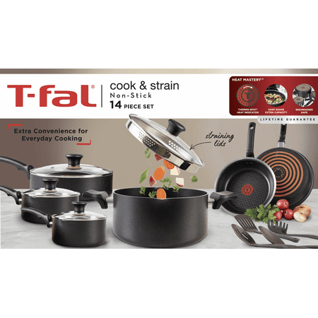 T-fal Comfort Titanium Nonstick Cookware, 14 piece Set, Black