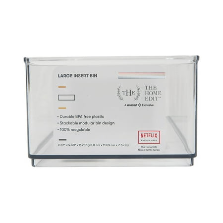 The Home Edit Large Clear Storage Bin Organizer Insert, 1 Piece, 9.37" x 2.95" x 4.38"
