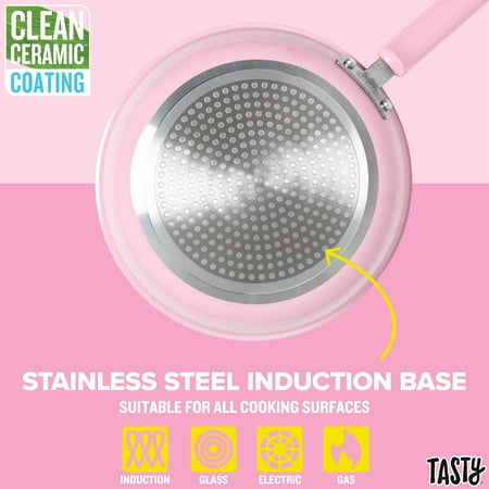 Tasty Clean Ceramic 16 Piece Non-Stick Aluminum Cookware Set, Pink