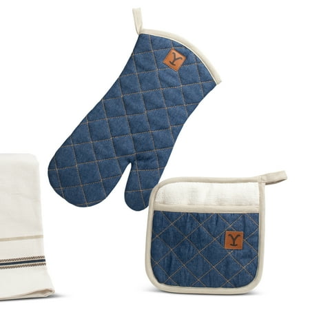 Yellowstone 3-Piece Oven Mitt, Pot Holder, & Tea Towel Kitchen Linen Set, Kayce Collection