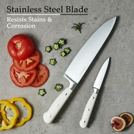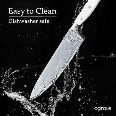 Carote 14 Pcs Knife Set with Wooden Block Stainless Steel Knives with Ergonomic Handle, Forged, White