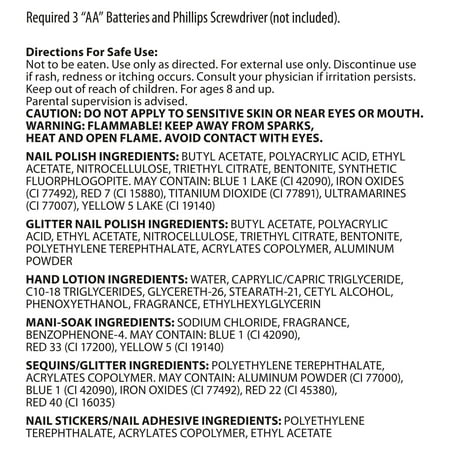 Experience the ultimate at home manicure spa day with this Be Inspired 5-in-1 Real Ultimate Nail Spa from Cra-Z-Art! Enjoy salon- quality treatment wherever you are, complete with a scented mani-soak, gentle hand massage, and a real nail polish manicure. Featuring a selection of metallic and glitter nail polishes, scented soaking salts, soft hand lotion, nail dryer, hand massager, and so much more, this ultimate spa unit has everything you need for a complete manicure spa experience anytime and anywhere. Perfect for birthday parties, sleepovers, hanging out with friends, or relaxing alone! Polish is non-toxic and made with safe ingredients. Suitable for ages 8 and up (Child-Tween age group). Be ?always creative? with Cra-Z-Art!