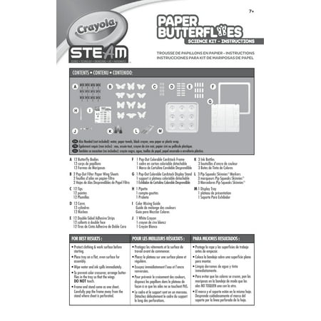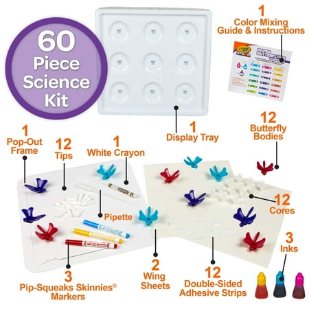 The Crayola Paper Butterfly Science Kit lets kids create beautiful paper butterflies that explode with color! This unique craft lets kids learn about the physics of capillary action as colorful inks are absorbed into the wings of paper butterflies! This STEAM-powered kit provides a hands-on learning experience that allows kids to be creative and have fun while they learn! The magic of these colorful butterflies is where science and art comes together! This kit features everything needed to make 12 Wicking Paper Butterflies, as well as a guide with step-by-step instructions. Makes a great gift for girls and boys on birthdays, holidays, and more. Safe and nontoxic, the kit is ideal for a teen or a unisex beginner child, ages 7 & up.
