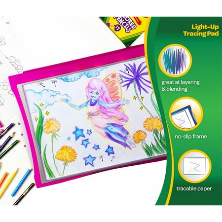 Crayola Pink Light-Up Tracing Pad with Tracing Sheets, Colored Pencils, and Graphite Pencil