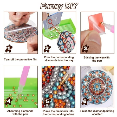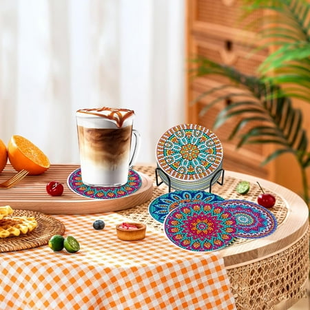 Diamond Painting Coasters with Holder,DIY Datura flower Life Coaster Diamond Art Kitsfor Beginners, Adults Small Diamond Painting Kit Art Craft Supplies(8 Pcs )